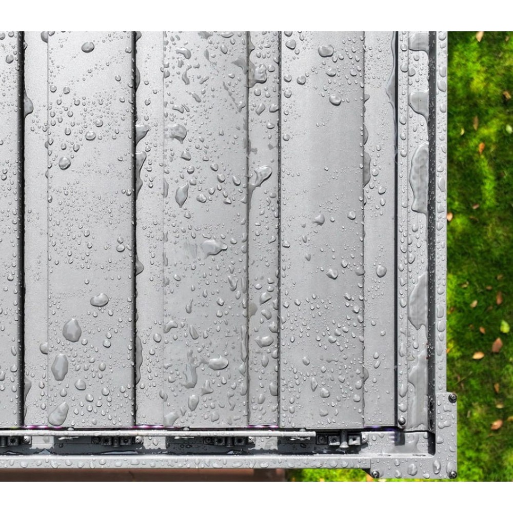 - Регульований дах: Ламелізований дах дозволяє налаштовувати рівень вентиляції та захисту від сонця залежно від погодних умов.